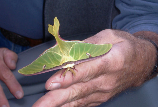 We’re on the next leg of our trip to our Alaska adventure. We are visiting Paula’s brother, Michael, who lives in Elm Springs, Arkansas. On our way here we spent last night in Hazen, Ak. This morning, as we were getting ready to pull out of the campground, I saw a Luna Moth sitting on the rear tire of the truck.