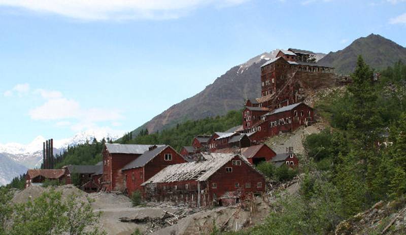 From Chitna, travelers take the McCarthy road to the town of…McCarthy! It’s a sixty mile, one lane, gravel road that follows the old rail bed of the CR&NW Rail Road…that’s the Copper River & Northwestern, or as the locals used to say, Can’t Run and Never Will. Anyway, the railroad stopped running in 1938 and eventually the rails were torn up, tossed over to the side of the road (they’re still there) and more gravel was spread to make a “drivable” road. It says something about the road that at each end there is a going tire repair business! We chose not to drive the F-550 down that road, so we left it at the Chitina Airport and took a shuttle van into McCarthy. From McCarthy, a very small town with about 40 year round residents, we took another shuttle van to an even smaller town five miles away. Kennicott is an abandoned copper mining town that the folks literally walked (or road the last train) away from in 1938. The mining company which owned the town was named after the Kennicott Glacier, which used to dominate the valley. Fore some reason, the founder of the mining company named it the Kennecott Mines Company. It later became the Kennecott Copper Corporation.
