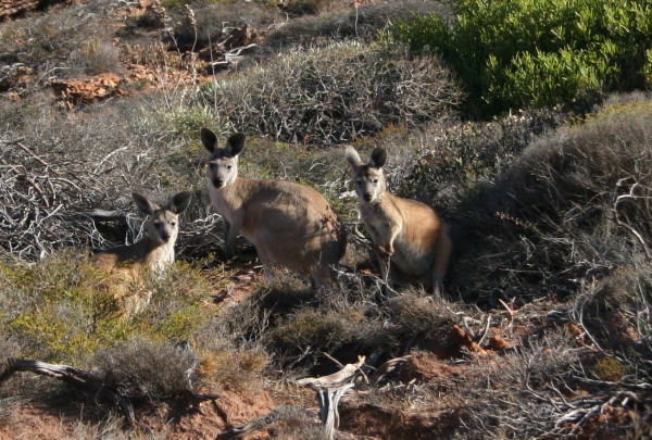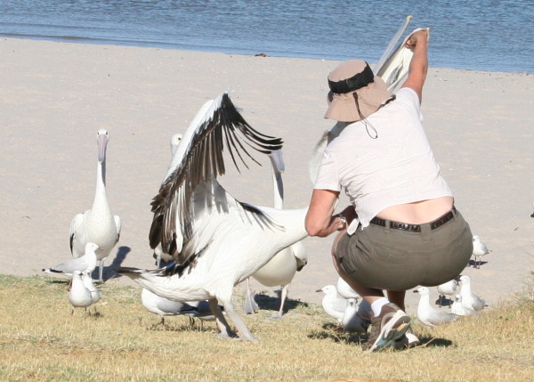 G'day! First let me clear up the identification of the lizard included in the previous post. It's a Long-nosed Dragon (Lophognathus longirostris). This impressivly slender, agile, racy lizard can run on its hind legs at up to 24 kilometers per hour, taking remarkably long strides. It runs down low-flying insects such as bees, wasps, bugs, beetles, grasshoppers, and moths. See http://www.natureswindow.dk/Lophognathus%20longirostris.html for additional photos. Well, we loved Kalbarri. It's a beautiful little town right on the coast and at the edge of the Kalbarri National Park. The scenery is spectacular and there are some attractions worth seeing...plus there are a couple of restaurants that are outstanding! Here's a view of the Murchison River in Kalbarri National Park... And one along the coast... We hiked a trail along the coast and encountered this native family having a picnic... Every morning on the foreshore, they feed the pelicans...Paula got to help with the feeding...here she is with her hand in one of the pelican.s mouth! We visited a seahorse research facility... And a very nice aviary... Kalbarri was great...we have lots more to share about it...but time is short...maybe next time. We are presently back in Perth on our way to the southern areas of WA. The south is a more popular area and we specifically avoided it during the "school holiday" which ends tomorrow. Many Australians take their vacations during the month of January when the kids are out of school...it is mid-summer here, you know. Anyway, we will be heading down south, where the weather is somewhat milder, since it is further from the equator. While in Perth these past few days we went to a performance of Cirque du Soleil which was terrific...and spent some time visiting with an Australian couple. Paul worked at the State Library of Florida in 1973 with Pippa Ryan. They had not seen each other since then...but Pippa had been in touch with Susan Campbell from time to time. Paul got her address from Susan, and we had a lovely visit at their home in Perth. This message is being sent from the WiFi network at their home. And so...our adventure continues... P&P |