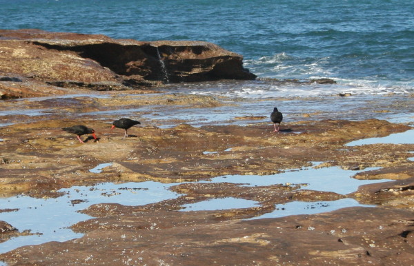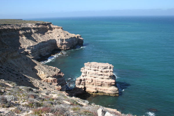 G'day... Have I mentioned that we really liked Kalbarri??? Here are a few more shots we took while hiking and touring around... Out in the Kalbarri National Park, down about a 500 meter trail from the car park, is a formation called Nature's Window. Here's Paula cooling herself in the shadows...of course, we only hike between 11:00 am and 2:00 pm!!! The Murchison River can also be seen through the window...we did a canoe safari on that river, but that's another story. While hiking along a coastal trail we encountered these Sooty Oyster-catchers probing at the shore for some lunch...after all, it was high noon! Did I mention that we only hike when it's really HOT! This formation is called Castle Rock...we saw some sea lions playing in the surf, but they were too far away to get a good photo. We read in the guidebook that there was a Pink Lake down the coast about 30 k, so we set out to see it...expecting it to be, at best, "pinkish". Turns out it is Pepto Bismol pink...as we were approaching it you could see the pink reflection in the clouds. On our way from Kalbarri up to Monkey Mia, we encountered this little family of emus. In spite of the fact that we had seen lots of emus at the zoo or in wildlife parks, it is still a thrill to see them "in the wild". The Monkey Mia or Shark Bay area is most famous for two things...one is the stromatolites which are in Hamlin Pool just off the road to Monkey Mia and at the far (from the sea) end of Shark Bay. They look like boulders, but are actually formed by sediment becoming trapped by thin organic mats of living organisms called cyanobacteria. These particular ones in Hamlin Pool are about 3000 years old and still growing...albeit very slowly. This photo is at low tide so the cynobacteria are not active, but at high tide you can actually see small bubbles of oxygen produced by these organisms rising to the surface. The other thing that the area is most famous for is the wild dolphins which come into the shallow waters at Monkey Mia to be hand fed. Access to the dolphins is tightly controlled. You are not allowed to just wade into the water with them, but you can get very close. A few visitors are selected by the rangers to feed the dolphins, but no one is allowed to touch them...they are not tame and are not pets. They do come into knee deep water and frequently peer up at the crowd gathered to see them. Some think that they are curious about the creatures gathered on the beach...I suspect they are just looking for the fish..."Hey, you got any fish???" The Australia phase of our adventure is getting down to the last week...there is so much that I want to talk about...it is such a wonderful country with many unusual or at least different customs. For instance, the coinage consists of a five cent piece, a ten cent piece, a twenty cent piece, a fifty cent piece, a 1 dollar coin and a 2 dollar coin. The 1 dollar and 2 dollar coins are gold coloured with the 1 dollar about the size of a US quarter and the 2 dollar about the size of a US dime, but thicker. The silver coins are sized by their value, i.e., the five cent piece is the smallest while the fifty cent piece is the largest. Kinda makes sense, doesn't it! You may have noticed that there is no longer any 1 cent piece. Absolutely correct. When you do some shopping and pay with cash, the total is rounded to the nearest five cents. So if your bill comes to $5.63, you will hear the cashier say, "5 dollars 65, thank you!" Of course if your bill is $5.62, you will hear, "5 dollars sixty, thank you!" It all seems to work out in the end and no one has a jar of 1 cent pieces at home. For those of you who might want to track us on a map, we are currently in Augusta, WA, where the Indian Ocean meets the Southern Ocean, and by the time you read this, we should be in Walpole, WA, along the southern coast...if it's Friday (in the US), it's Walpole. So, our adventure continues... P&P > |