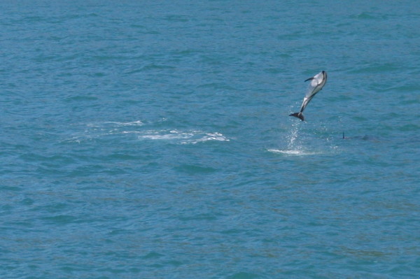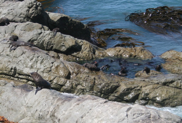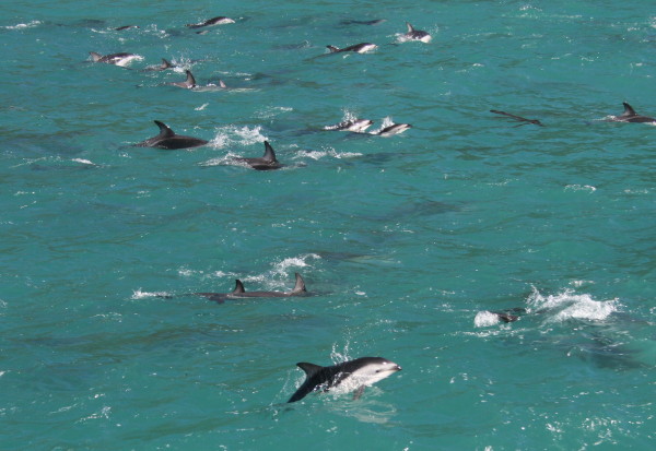 Hello, again... You remember I talked about the Australian money and how they did away with the 1 cent coin? Well in NZ, they have abolished the 1 cent and 5 cent coins. They have a 10 cent coin that is the size and color of the 1 cent US coin...and about as useful. Then they have a 20 cent coin about the size of a US 5 cent piece, and a 50 cent coin about the size of a US quarter. They also have $1 and $2 gold coloured coins, and they are about the size of the NZ 10 cent piece and 50 cent piece respectively, only twice as thick. You might remember that these are just the opposite sizes from the Australia $1 and $2 coins...a bit confusing at first, but you get used to it. Since there are no 1 cent and 5 cent coins, when you pay cash for something that costs $6.94, you only pay $6.90. Of course if the total is $6.96, you pay $7.00! We've been on the South Island now for over a week...and it has been a week packed with an amazing variety of experiences. On our way from Picton down to Kaikoura we went by a salt processing plant. It appeared that they were recovering salt from the sea...and they were pretty successful! Yes, that's full size machinery moving the pile of salt around...I thought it was an interesting sight. The highlight of our stay in Kaikoura was a boat trip out on the Southern Ocean to see if we could spot any whales or dolphins... And, as you can see, we did encounter a few Sperm Whales...this pair stayed around for a few minutes, and we eventually saw six or seven others while we were out. There were also a number of Albatross flying around...here's one that got close enough for me to get a picture. Without some reference point, it's hard to tell that the wingspan is seven or eight feet! Of course, no whale watch adventure is complete without a tail shot...so here's one. I'm pretty sure he wasn't swatting at the sea bird flying by! Amazing the stuff you find in your photos when you finally get to look at them closely. In between spotting the whales we also came across a very large pod of Dusky Dolphins. There must have been two or three hundred because they were all around us...very playful and acrobatic. Lots of them would jump all the way out of the water and do flips in the air. They were amazing! Near Kaikoura there was a good size New Zealand Fur Seal colony that we visited. There seems to be a very good crop of young ones, as you can see by this shot of ten or so of them enjoying this tidal pool among the rocks. They were great fun to watch. Every now and then a big wave would come along and knock several of them out of the pool...and they would climb right back in amidst much encouragement from their mates. We've also spent time in Christchurch, taken a train ride across the Southern Alps from one side of the island to the other, visited Dunedin, Invercargill and Bluff (the southern tip of the South Island), and spent two wonderful days in Fiordland National Park. Most days were sunny and warm...except for a three day stretch in Dunedin and Invercargill...temperatures were in the single digits, we had hail, we had sleet, we even had a bit of snow...but that's all behind us now...and our adventure continues...on to Queenstown! P&P |